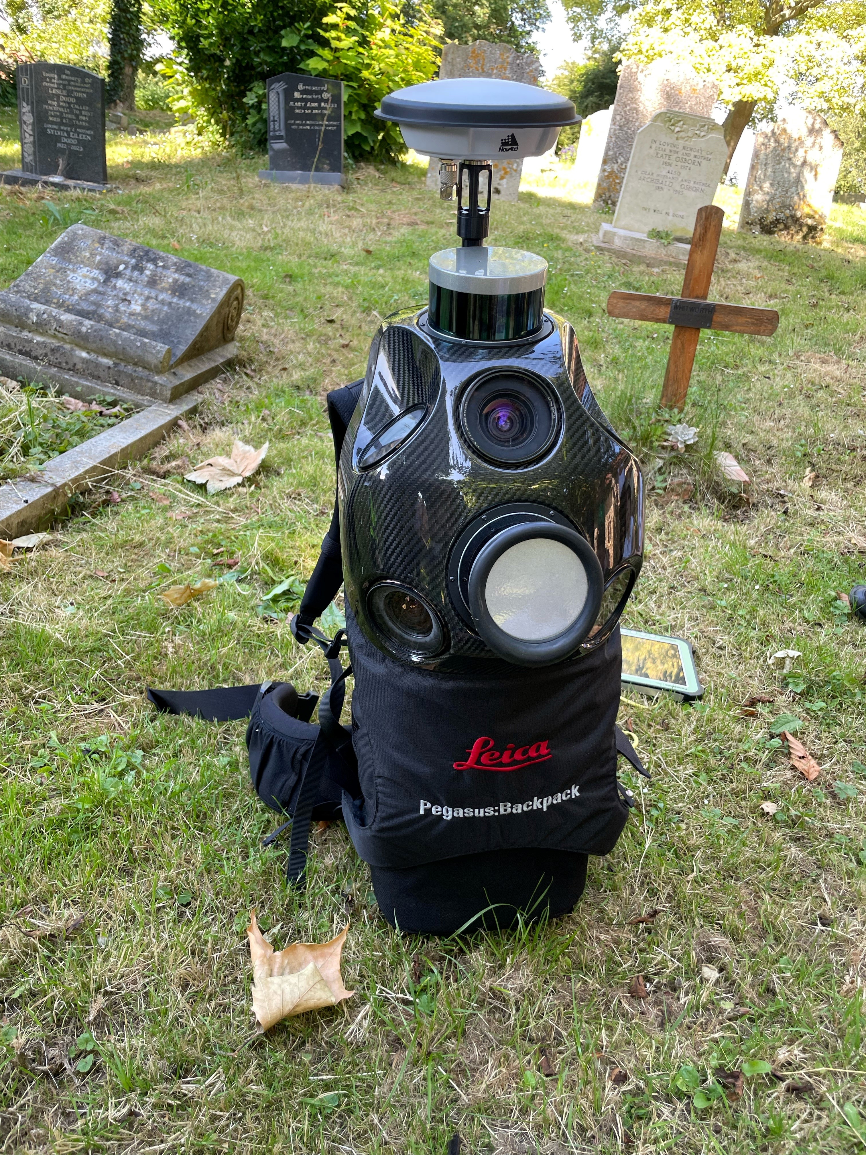 Pegasus the GPS mapping backpack used in Woodham Ferrers churchyard to survey more than 5 centuries of burials