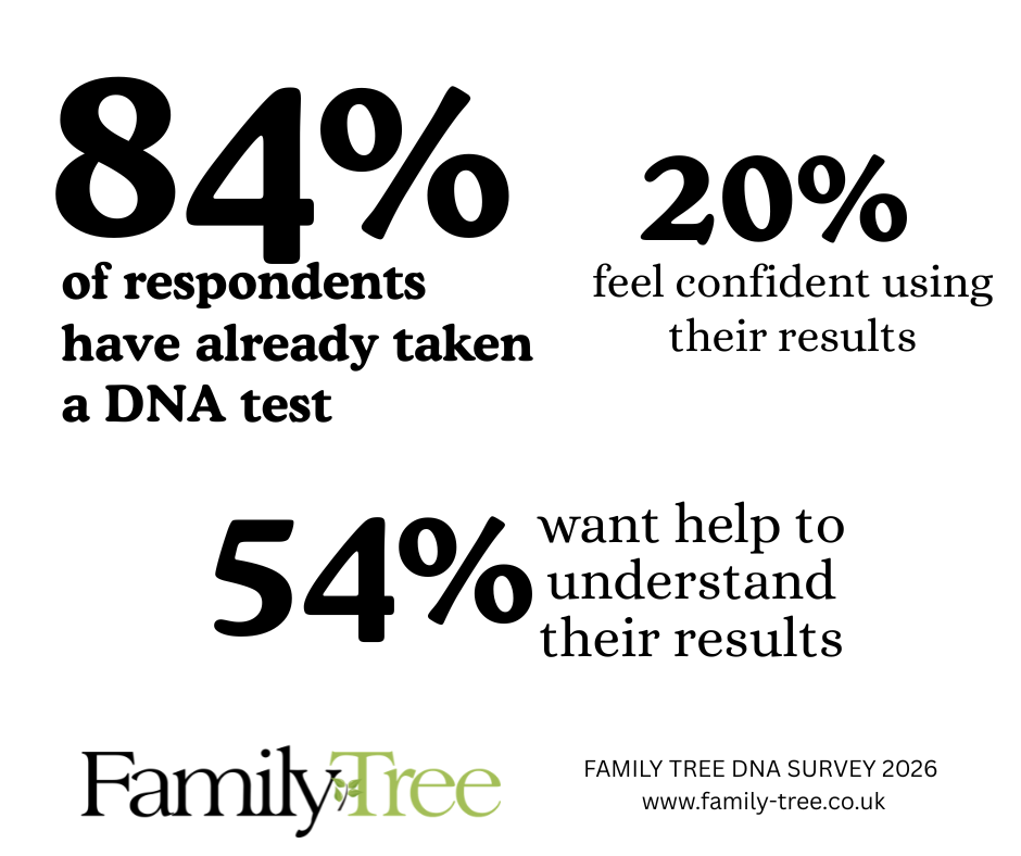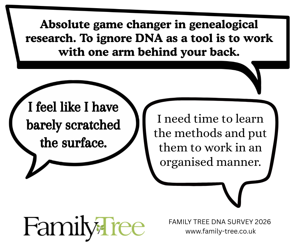 With our annual DNA Discoveries online event taking place in March, we asked Family Tree newsletter recipients to share your thoughts on DNA and reveal how (or if) it has helped your research, and the results have been intriguing.