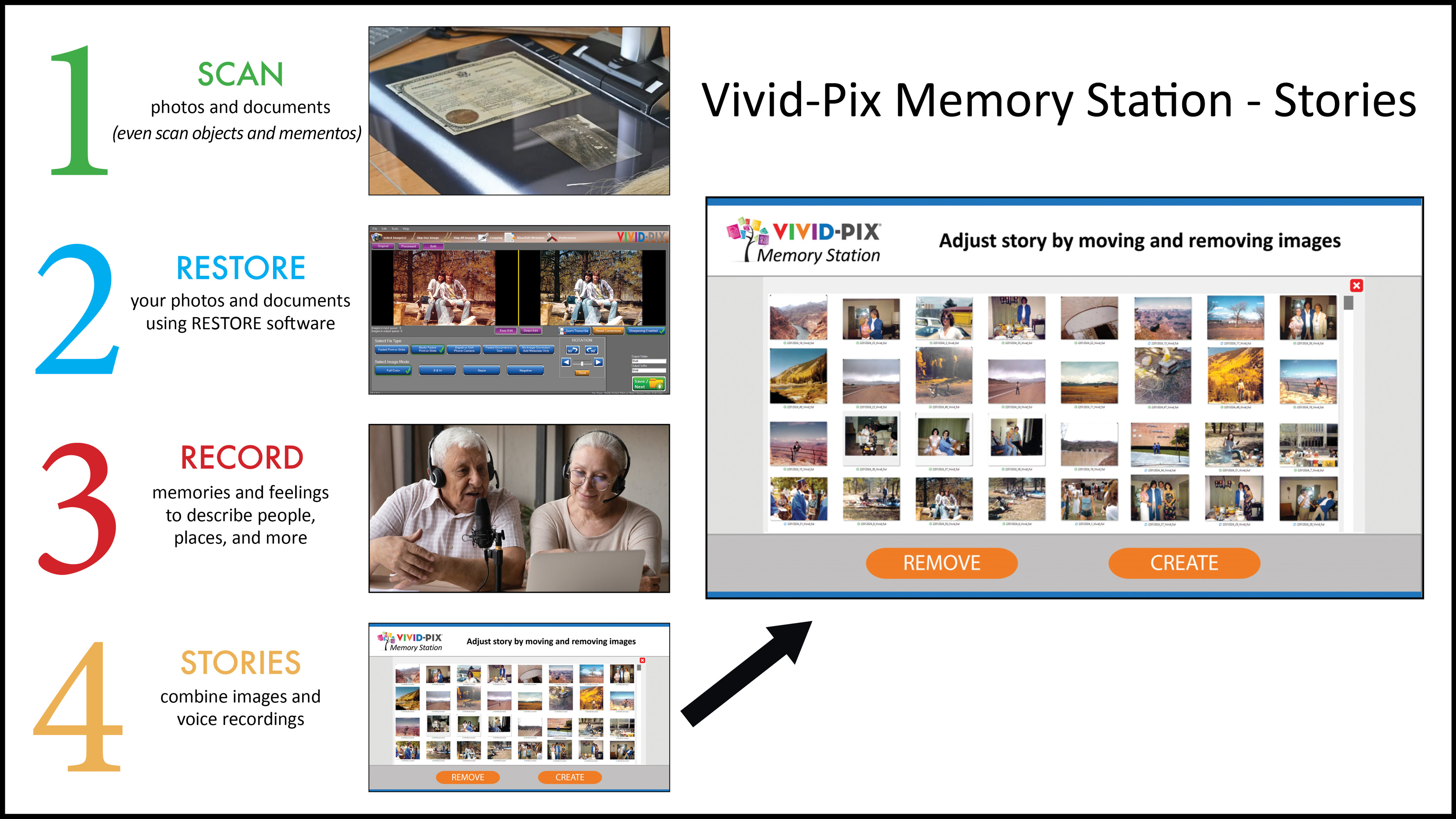 Vivid-Pix is all about making it simple to relive memories. It does so by providing both the tools and know-how to help people find, share and preserve their family stories and photos.