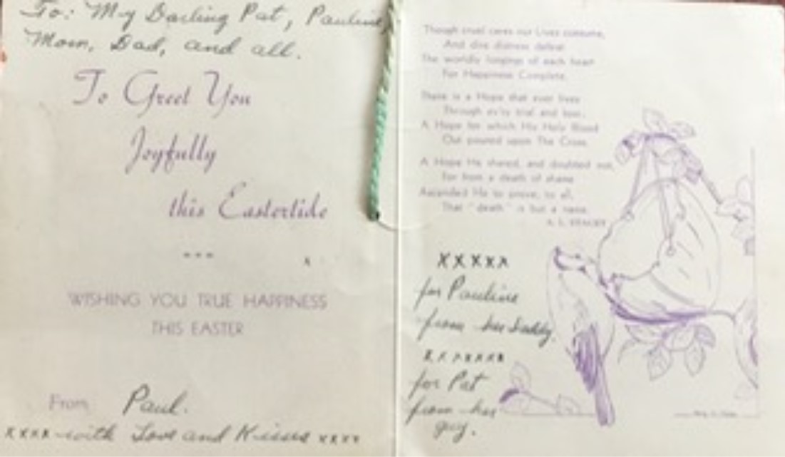 When I was around 13 my granny gave me a jewel box that had been my mum’s, with some mementoes in, including two letters and some beautiful greetings cards - one particularly said “Kisses for Pauline from her Daddy”.