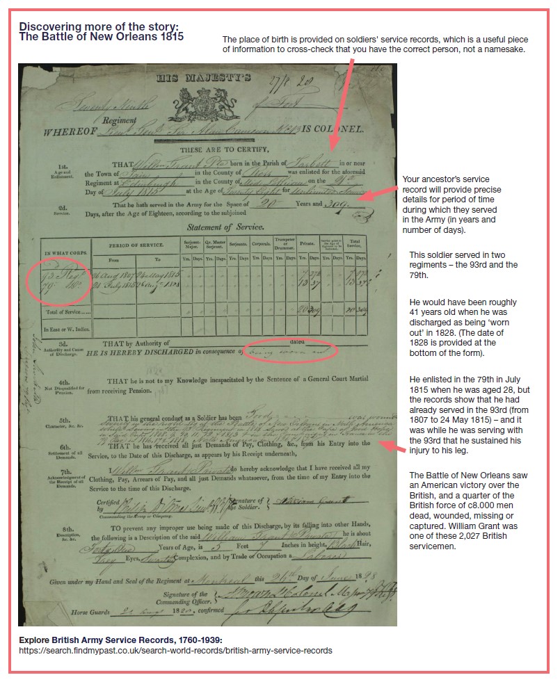 - William Grant was one of the 2,027 British servicemen dead, wounded, missing or captured at the Battle of New Orleans. See an excerpt from his service record, found on Findmypast, below.