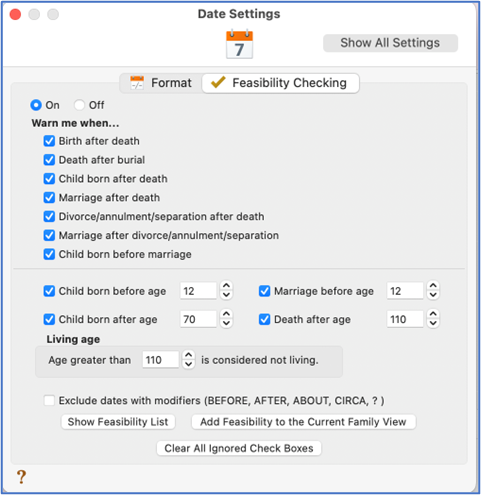 Settings: Shown (above) are the standard feasibility checking options that you would expect, and these can be modified in Settings.