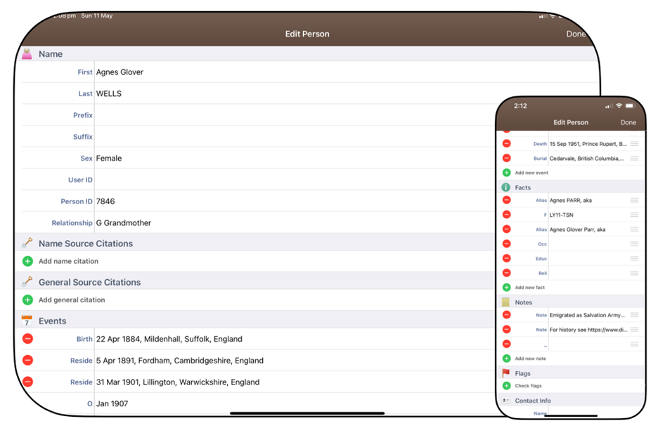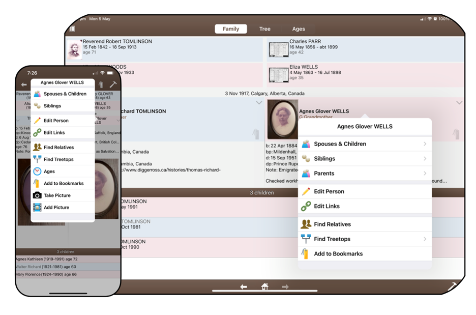 You can also purchase Reunion Touch (£9.99). This is perfect if you tend to spend a lot of time on your iPad or iPhone. It is great for editing and searching. Reunion Touch cannot import/export or run reports.