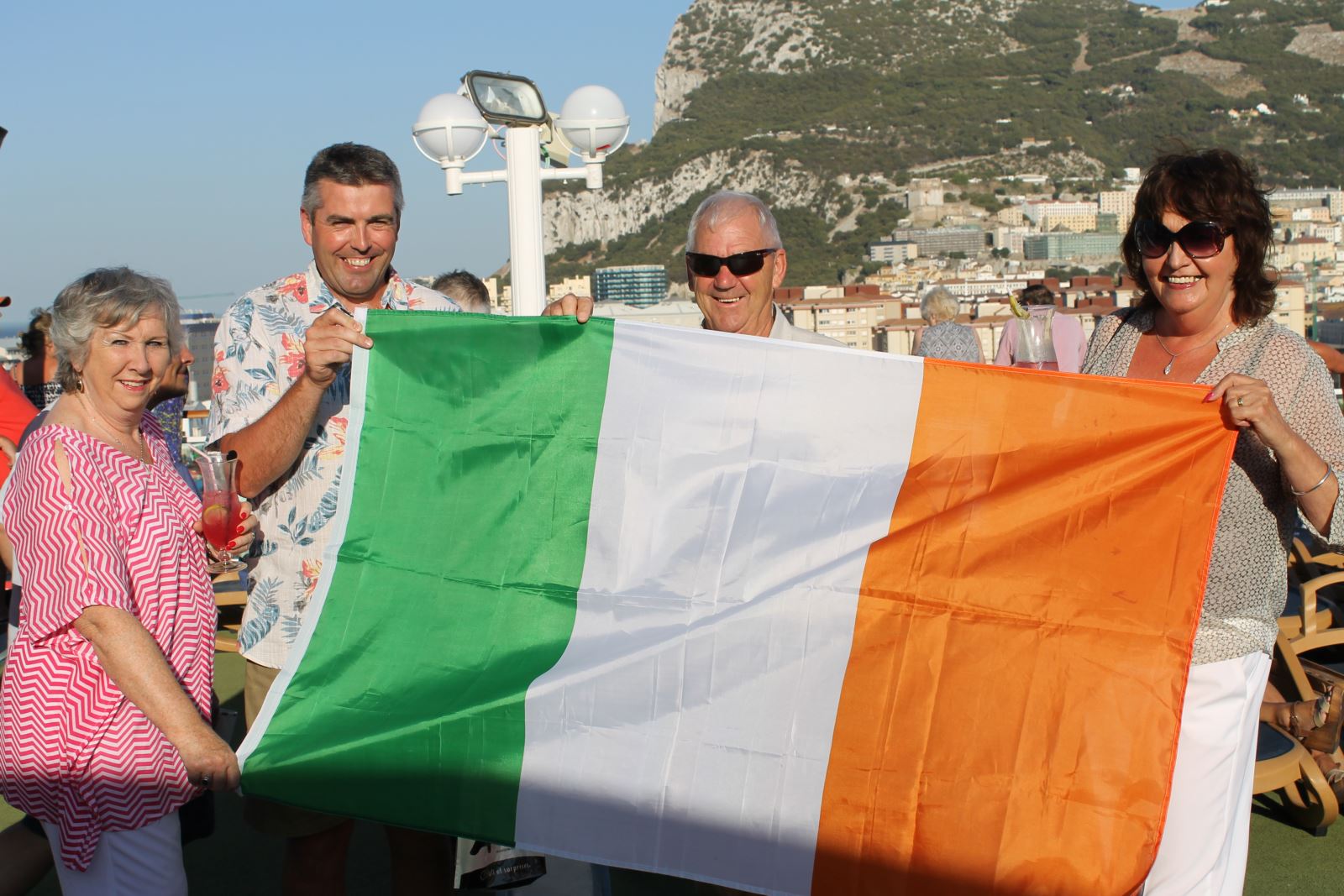 (Images from top: Clan Kelly Association members at a recent Council Meeting in Aughtrim; flying the flag at the Rock of Gibraltar)