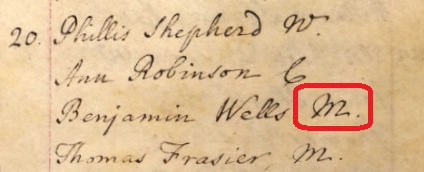 - c) M. = Man (Note that there are also entries for W[oman] and C[hild])