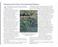 Online access to the searchable database will also be available through Devon Family History Society, and websites such as Genuki and St Mary's Churchyard website.