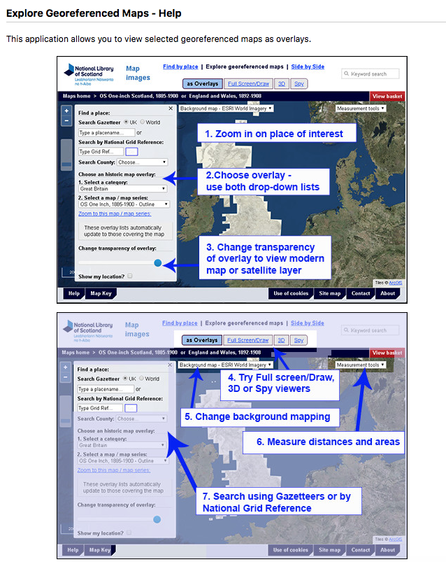 - Ordnance Survey Maps - With Ordnance Survey maps and using the ‘Explore georeferenced maps’ feature on the NLS maps website here, you can overlay old OS maps dating from the late 19th century onto a modern aerial image and slide between them seeing how your street and your house might have changed (or what was there before, if your street is more recent than the late 19th century).