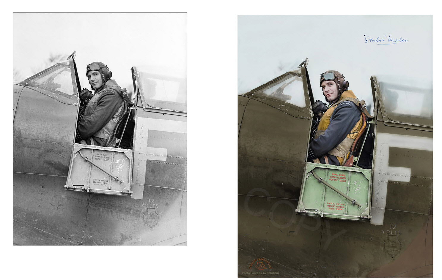 Sailor Malan was a South African fighter pilot and flying ace in the Royal Air Force (RAF) who led No. 74 Squadron RAF during the Battle of Britain. Find out more about this image and historically correct colourisation.