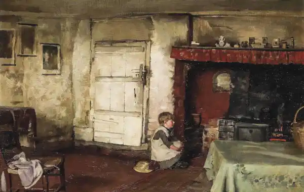 The downstairs usually comprised only one room, the poorest living spaces being plain, with simple tables, a few chairs and stools, and old sacks as hearth rugs. However, other cottages were cosier, furnished with dressers of crockery, pictures on the walls, upholstered seats, colourful hand-made rag floor-rugs, and pots of geraniums or fuchsias on the windowsills. Some displayed domestic heirlooms including grandfather clocks, gate-leg tables and rows of pewter: relics of earlier times when country life was easier.