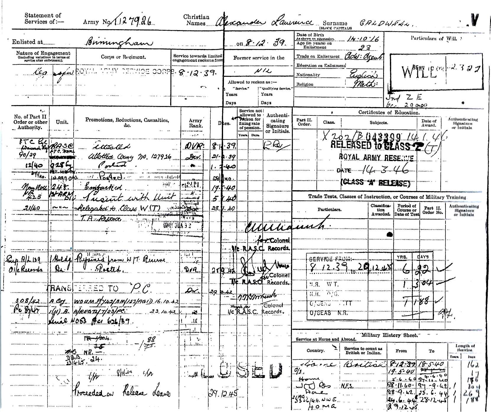 WO 422: Over two million records of non-commissioned officers and other ranks who served in infantry regiments of the British Army during the Second World War and who were discharged from the armed forces as over-age before their time expired in the reserves after 1945.