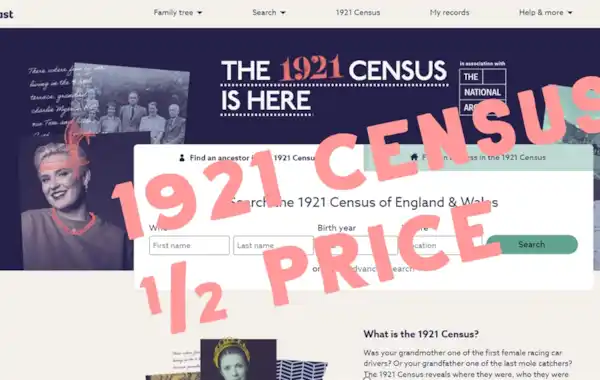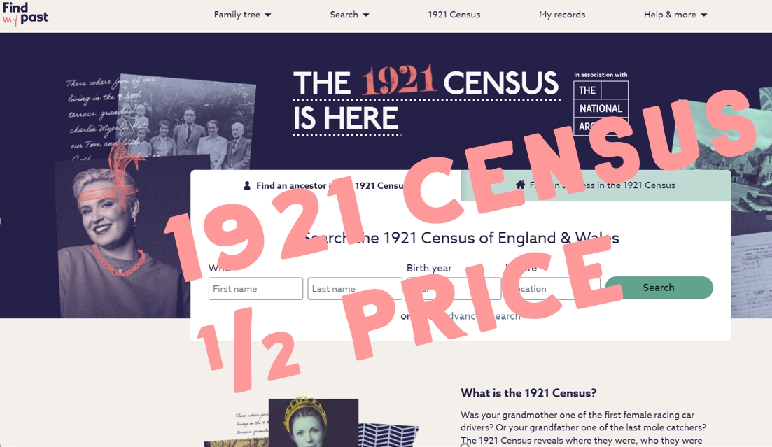 All 1921 Census purchases on Findmypast are 50% off from Friday 22 April to Monday 25 April.