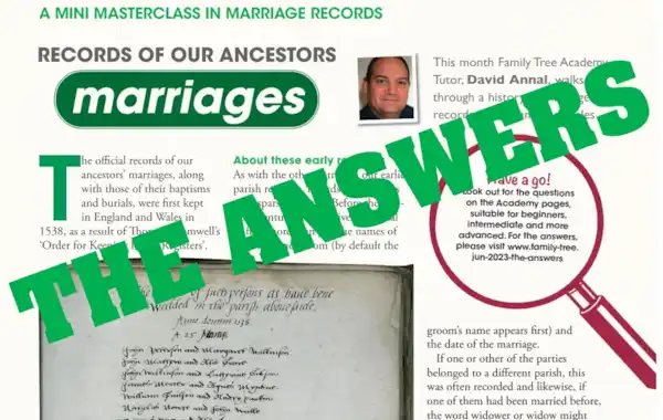 Find the answers below to the beginner, intermediate and advanced questions, and the thinking-outside-the-box challenge, that Family Tree Academy Tutor David Annal set in the June2023 issue of Family Tree.
