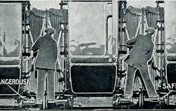 1930s staged staff safety image, showing the type of accident that Webb had. Courtesy Railway Work, Life & Death project.