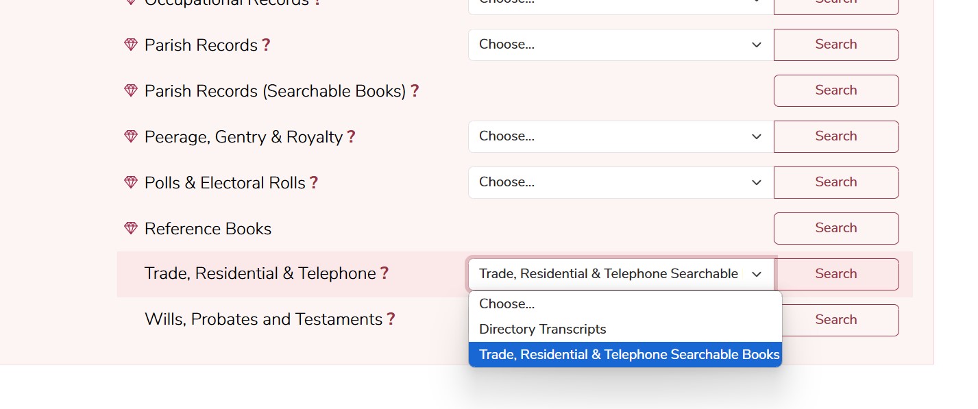 The best way to locate them is to go to TheGenealogist > Search > Find records & scroll down to 'Reference Books' and choose 'Trade, Residential and Telephone' then 'Trade, Residential and Searchable Books'.