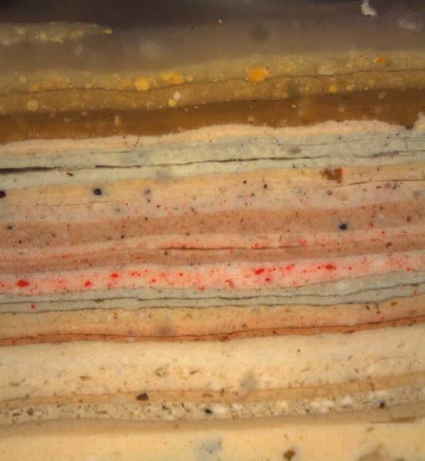 Paint layers from the Card Room at the Assembly Rooms, Bath. Photo copyright Lisa Oestreicher