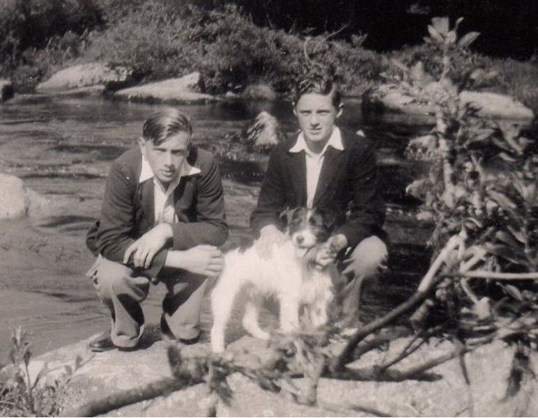 At the beginning of the war my two life-long friends came into the village. One was John Perkins, who was the grandson of Mr Robinson who had been Lady Roborough’s chauffeur and who was my grandparents’ neighbour at Pound Cross, Maristow. John’s father was conscripted into the Army and I think he was serving in North Africa, so John and his mother left their home in South Sussex and moved in with the Robinson family for the duration of the war. The Robinsons were then living in the lodge at Roborough House, a short distance from the village and moved into the village later. John started school at Bickleigh at about the same time as I did and we always walked most of the way home together until we reached the village, where we would part company. The photo shows John with me in 1950.