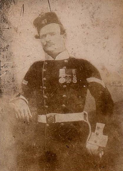 A similar kind of article was sent to me by the Regimental Museum. The museum staff were very helpful, but had limited information on him. However, they did have a painting which depicts the feat for which he was decorated: saving Colonel O’Grady Haly. This was painted by Chevalier Louis William Desanges, a prominent painter of VC heroes. This hangs in the Regimental Officer’s Mess. The National Army Museum also has a similar painting.