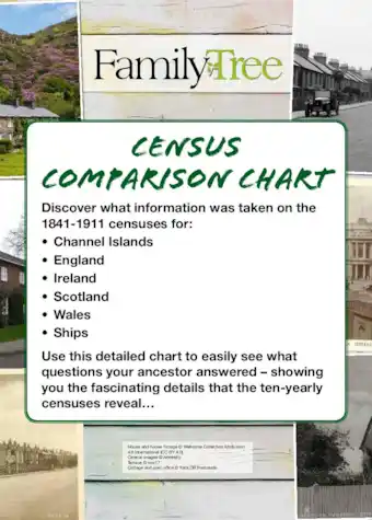 Our handy chart allows you to find out what questions your ancestor was asked - from the 1841 census, every ten years through to 1911. As the censuses progressed more information was added each time - our chart is a quick and handy way to see all information at a glance.