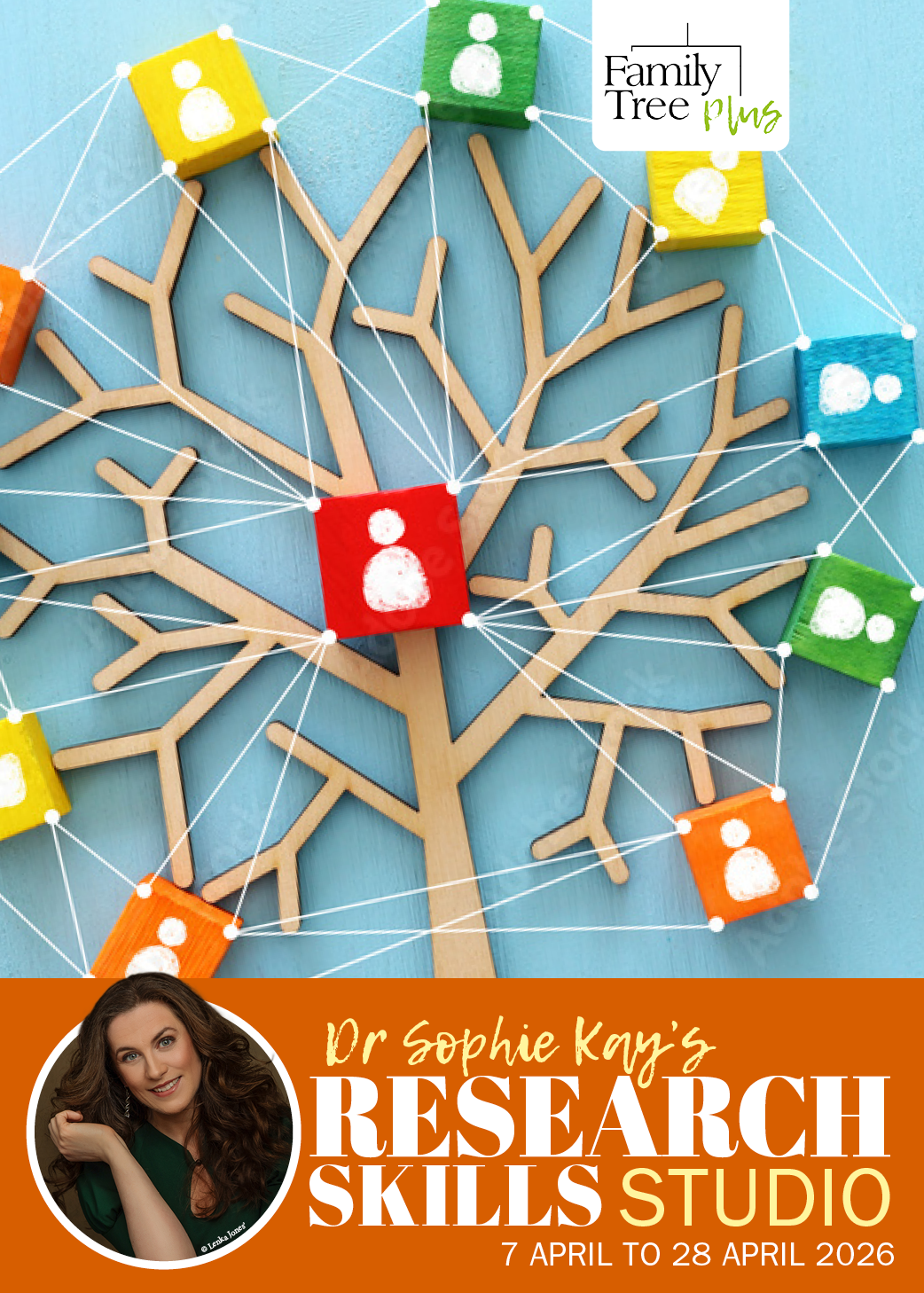 - 4 live online tutorials with professional genealogist Dr Sophie Kay