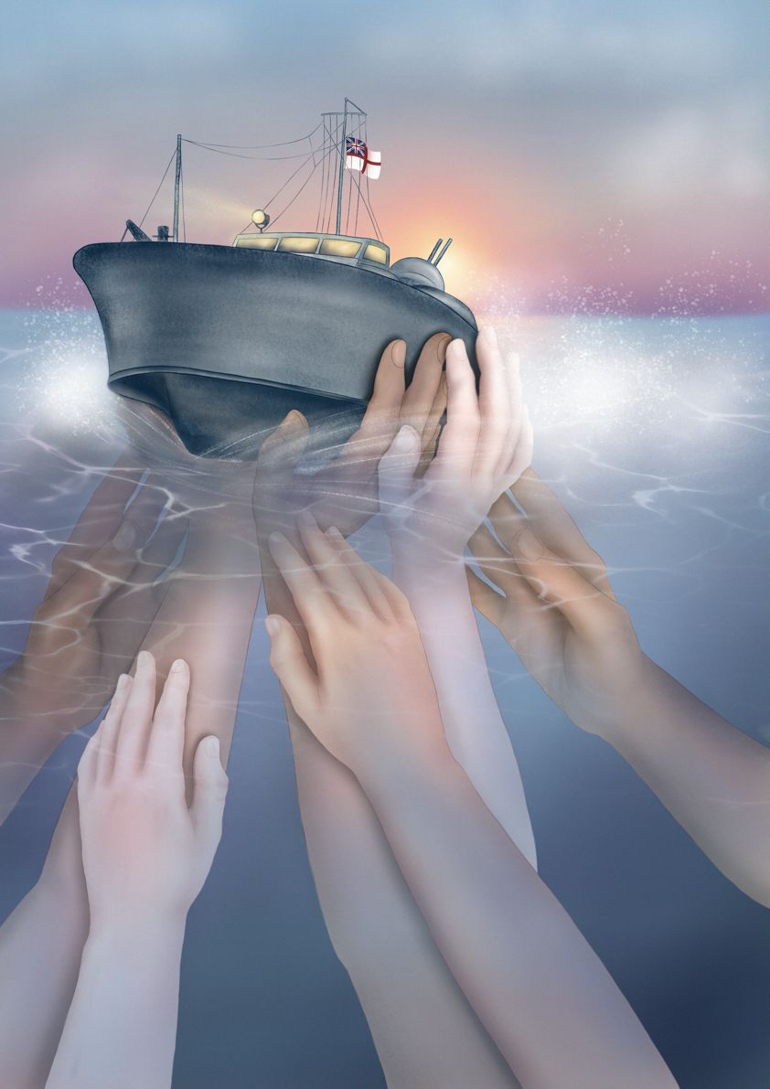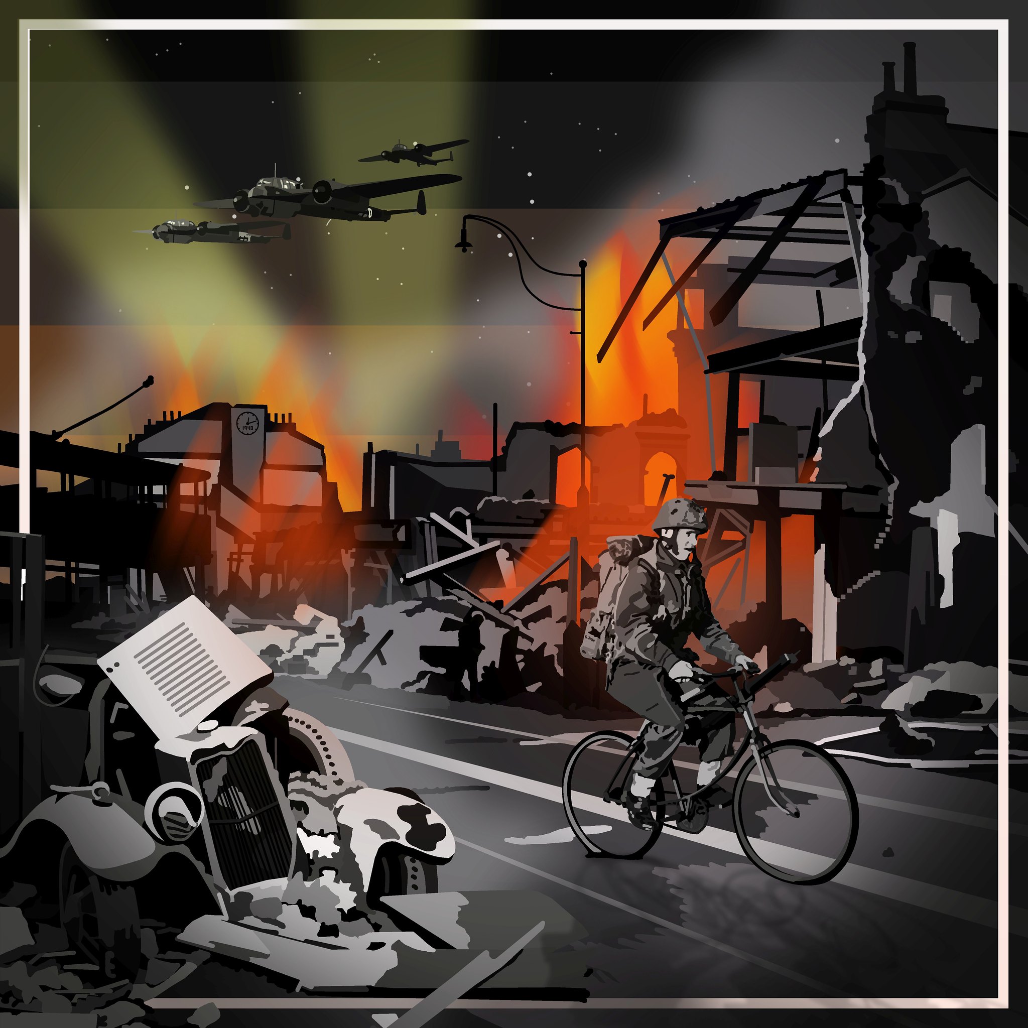 Using artistic mediums ranging from digital illustration to oil painting, 33 artists from around the UK have created contemporary interpretations of records and images. Artists include Megan Menzies who portrayed a wedding ceremony in the ruins of the New Jewin Welsh Chapel, Aldersgate, which was destroyed during the London blitz via oil on canvas. Whilst, Amy Kate Wolfe unveils the bravery of two men who rescued five horses belonging to Great Western Railway whose stables were under fire in South Docks, Swansea.