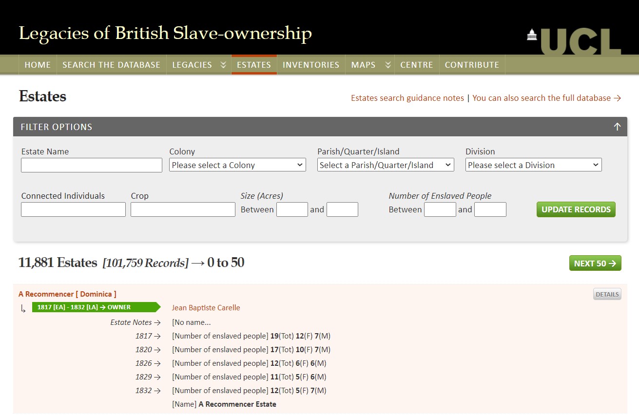 Discover how to search the website for biographical information about slave owners, and details and whereabouts of the plantations, and so learn more about the legacies of colonial slavery, the land and wealth involved, the owners – and the background to the lives of enslaved people.