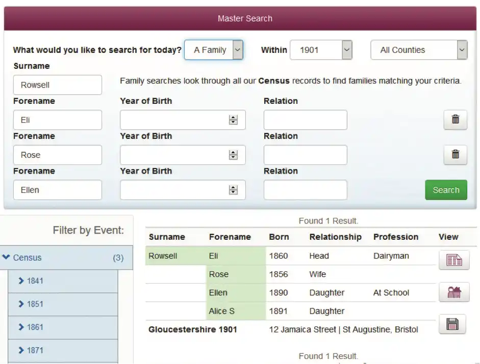 - Begin your search on TheGenealogist with the Master Search, which allows you to search across all record sets simultaneously. The site’s ‘search for a family’ tool can be found via the dropdown menu on Master Search and allows you to use the forenames of a family to refine down to the correct group of people. Keywords such as an occupation or place of birth can also help you narrow down the results.